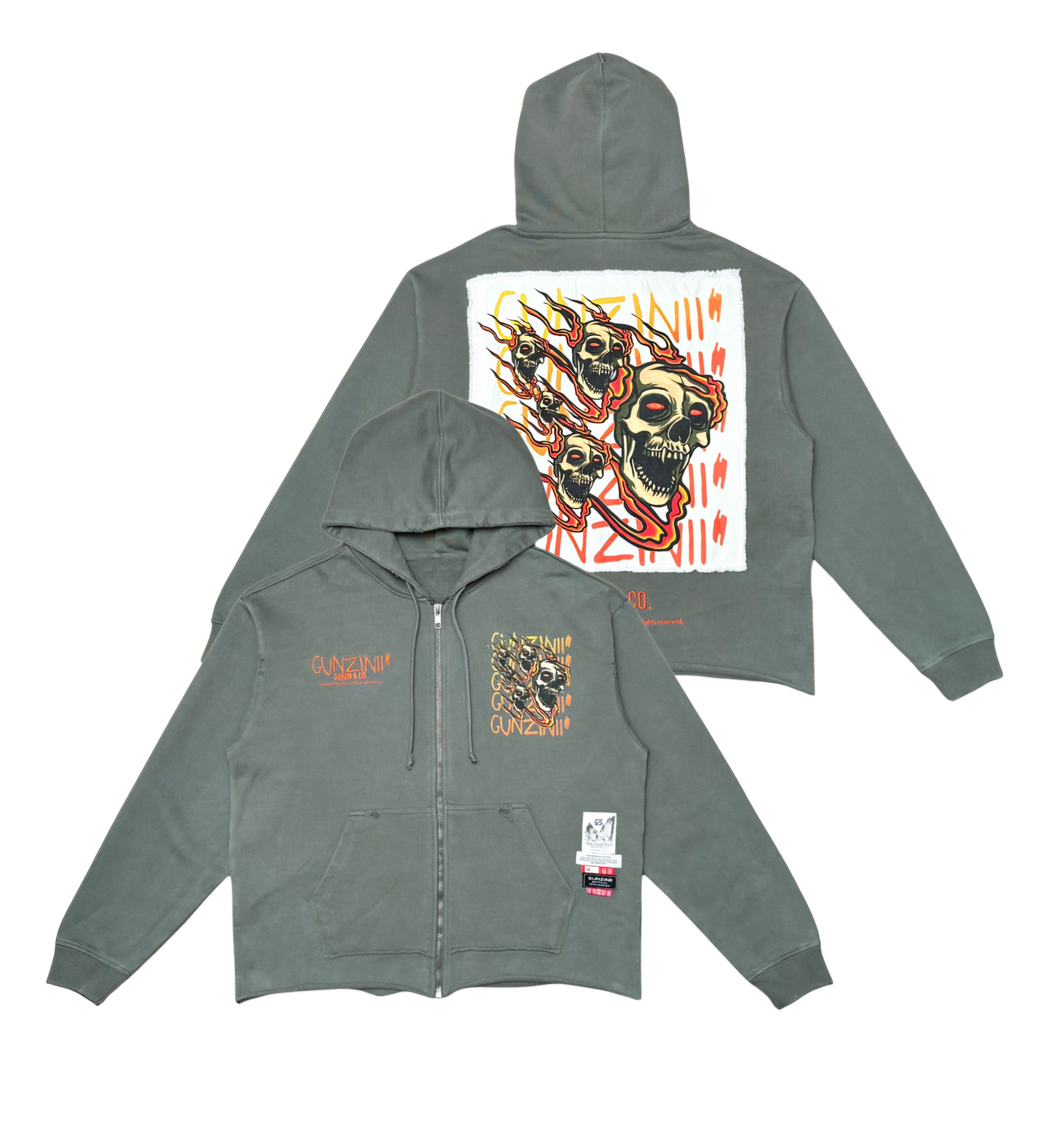 Gunzinii Crop Zinni Skull Fire Zip Down Hoodie