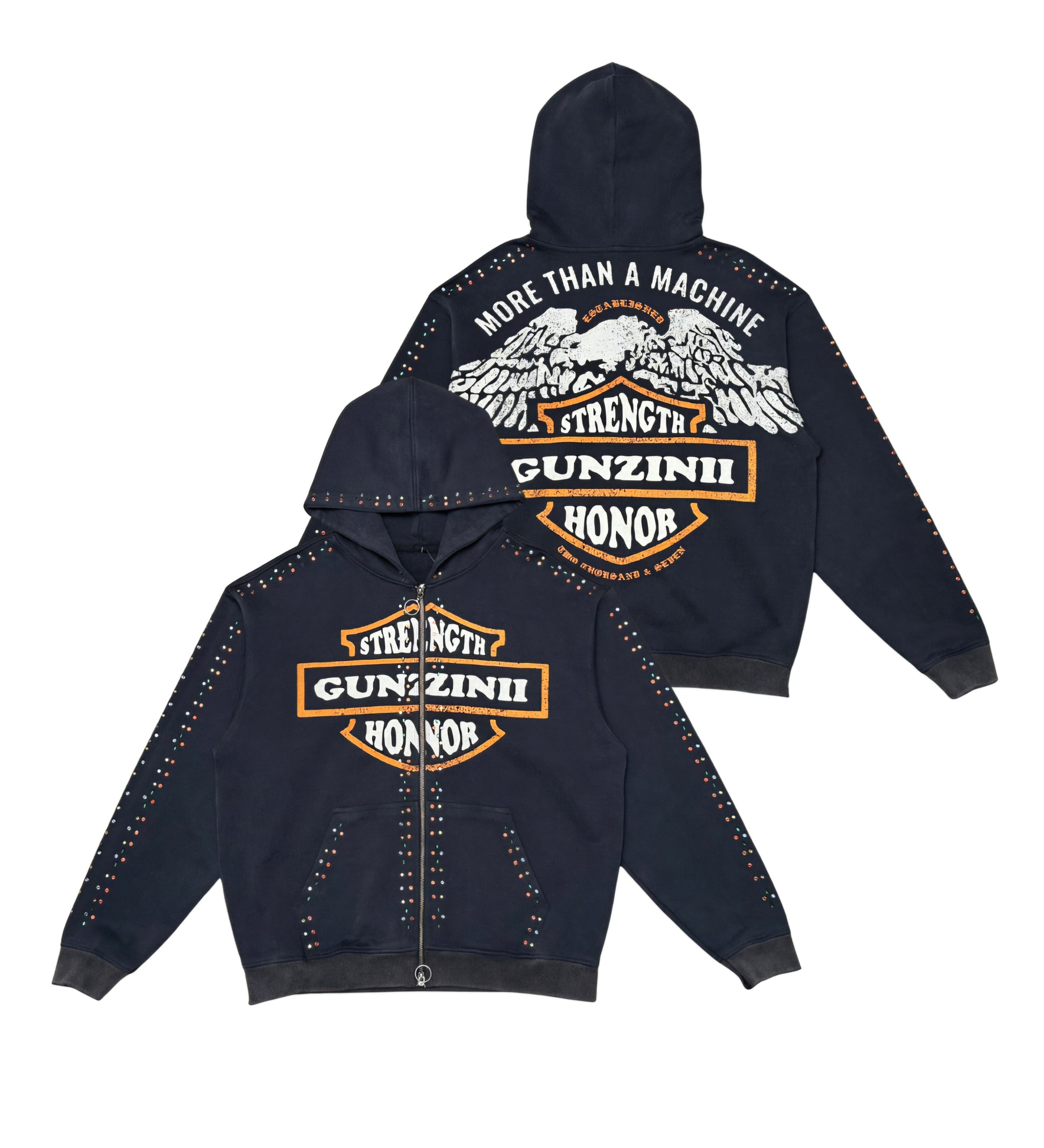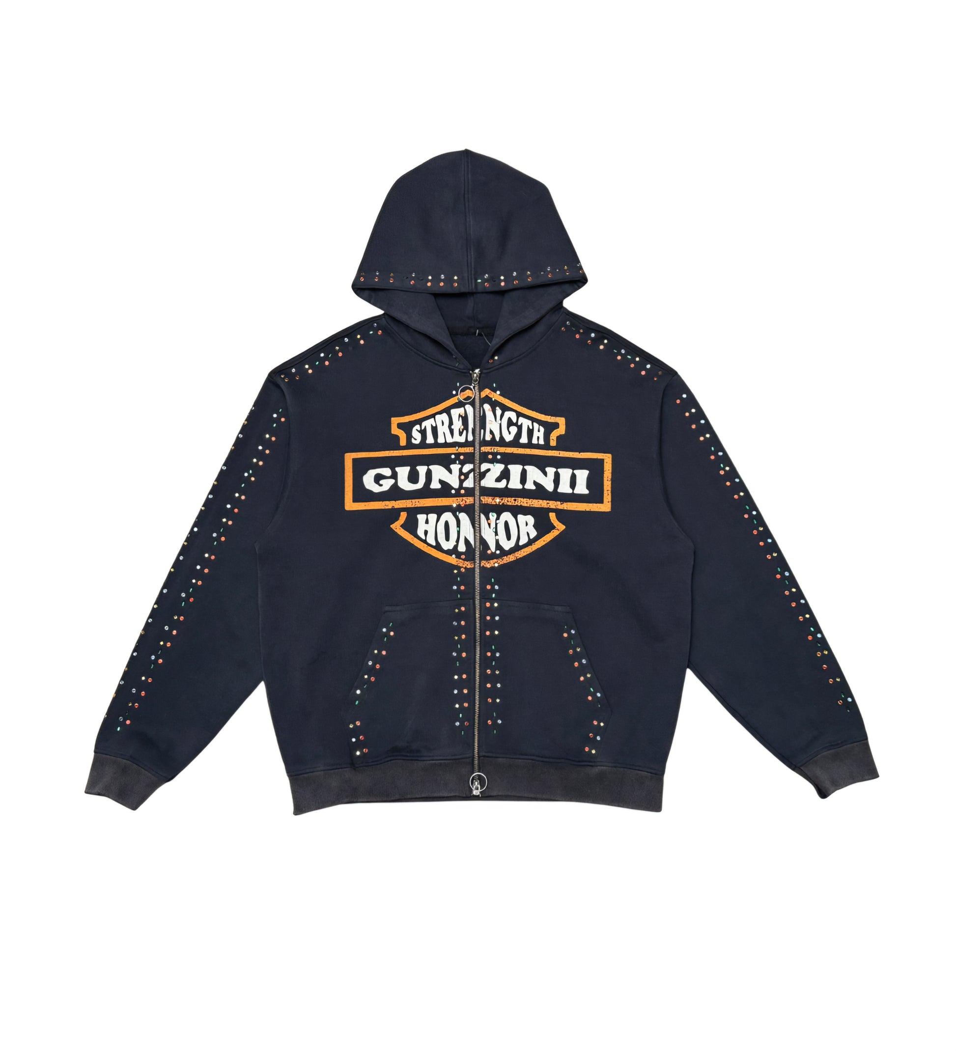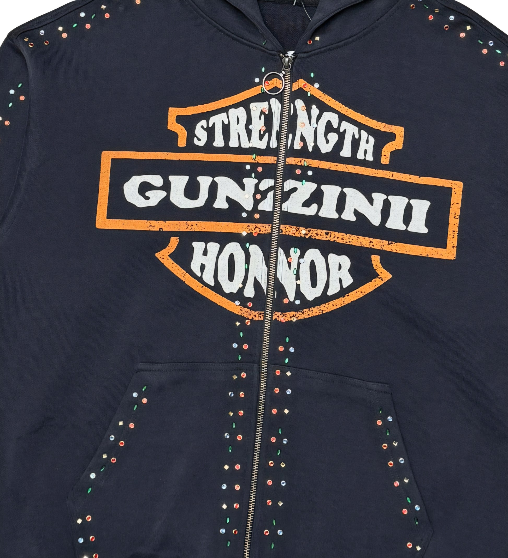 Gunzinii More Than A Machine Cropped VVS Rhinestone Zip Down Hoodie
