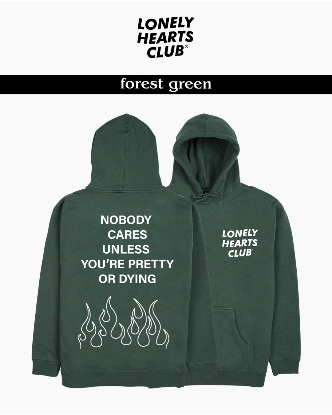 Lonely Hearts Club Nobody Cares Hoodie (Forest Green)