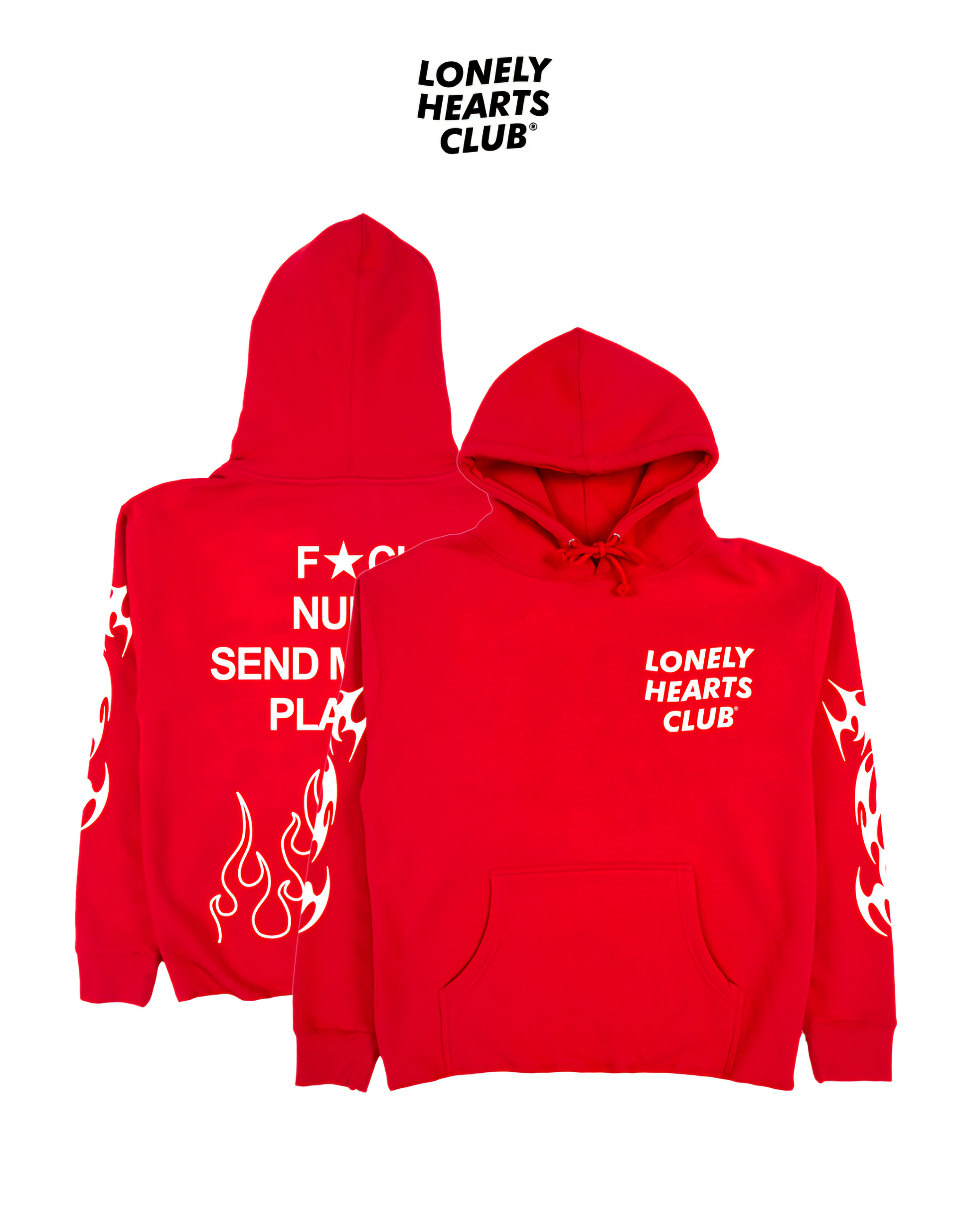 Lonely Hearts Club Send Me Your Playlist Heavyweight Cropped Hoodie (Red)