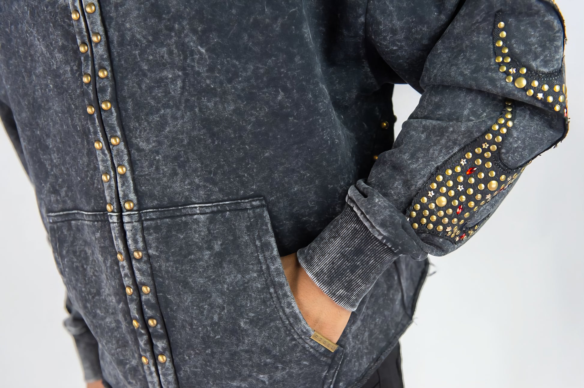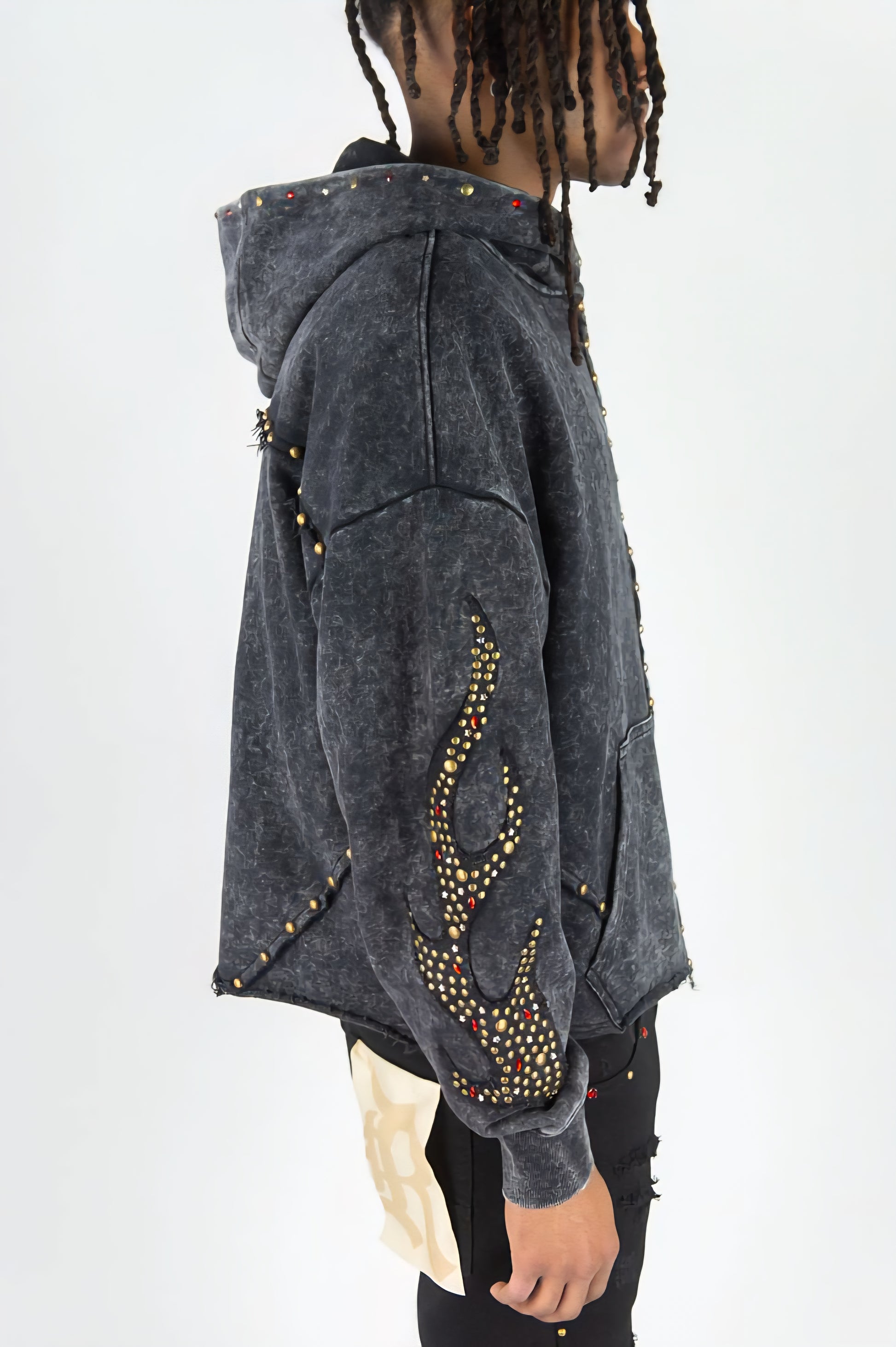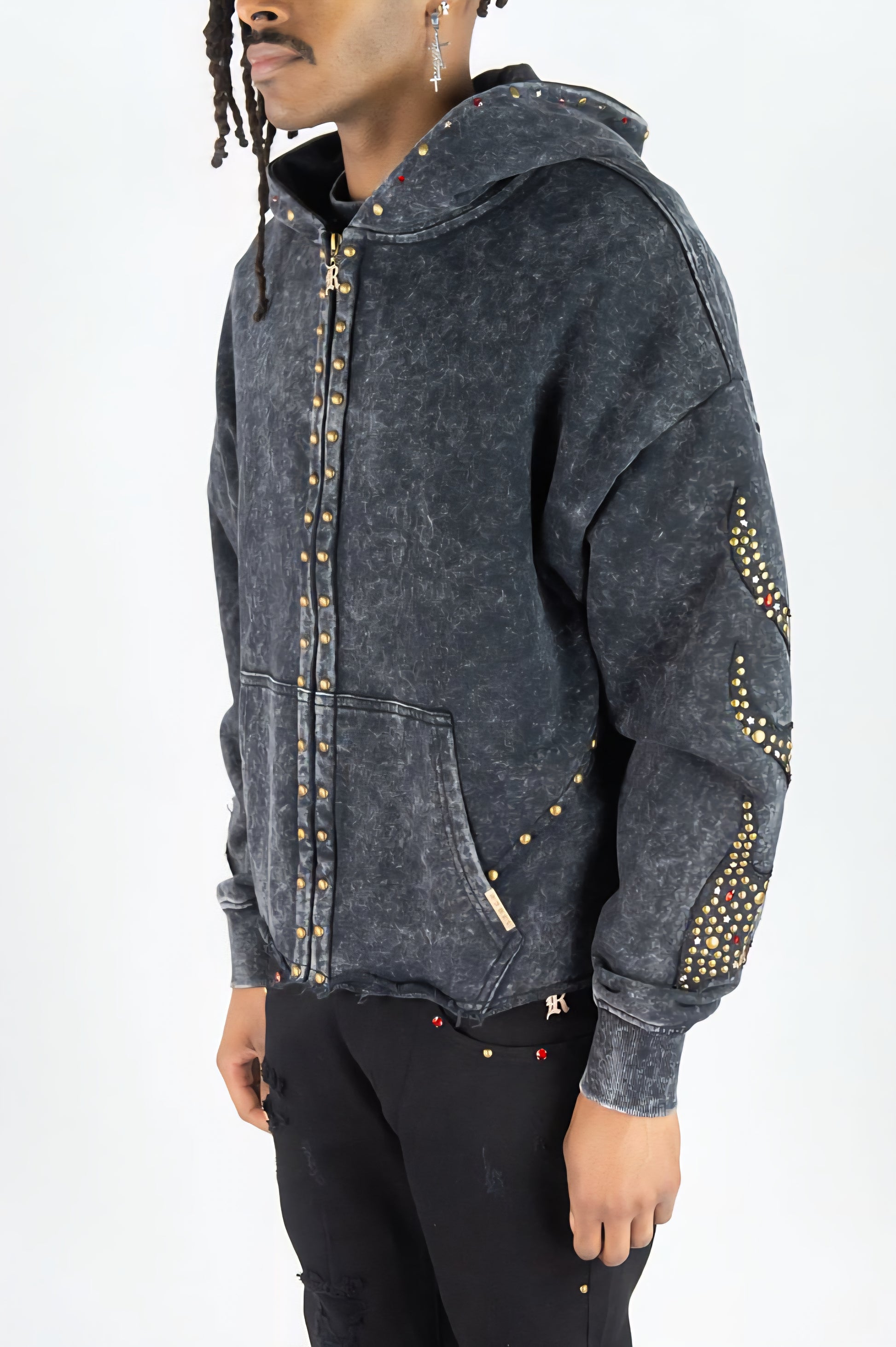 Rebel Denim Firefest Full Zip Premium Rhinestones & Studded Hoodie (Black)