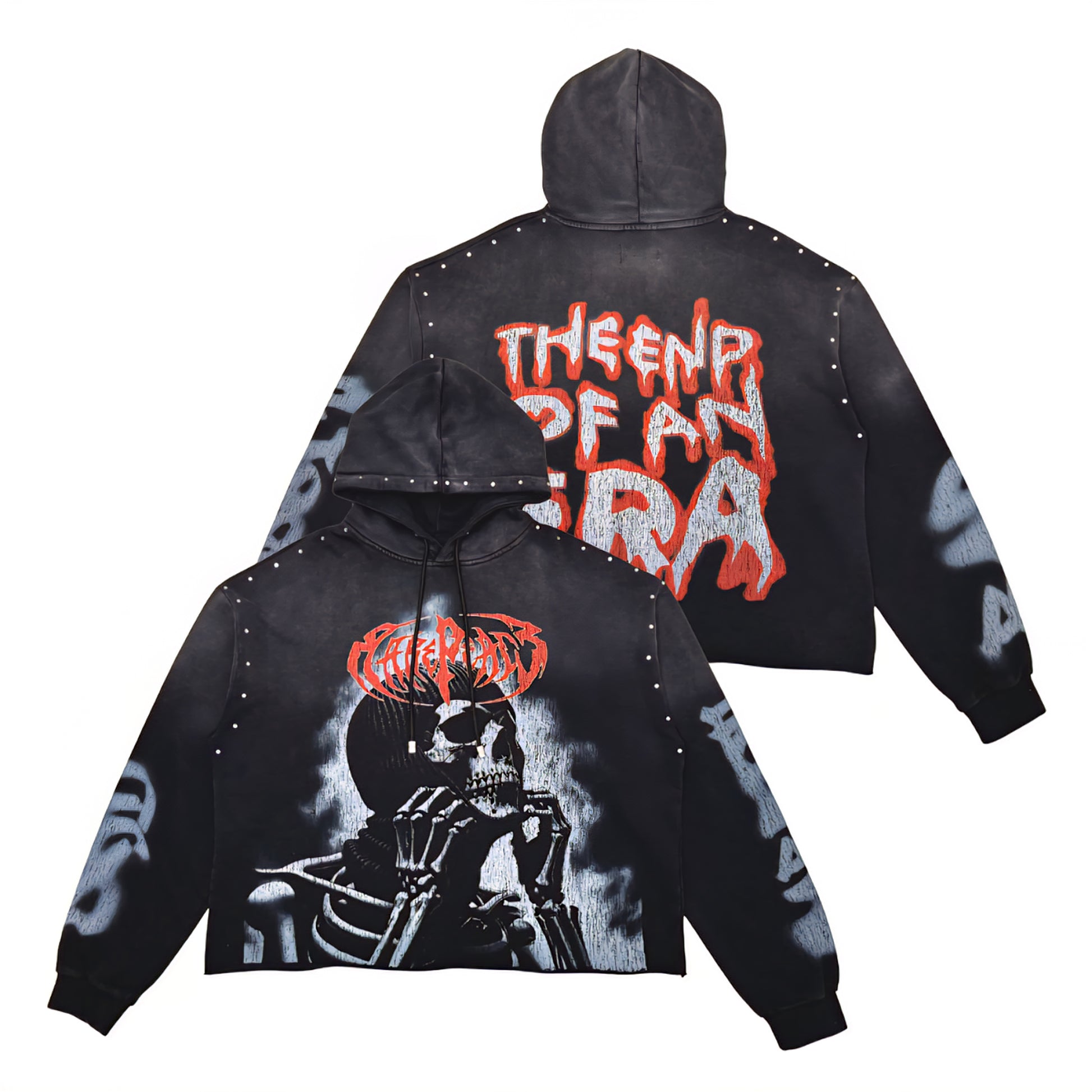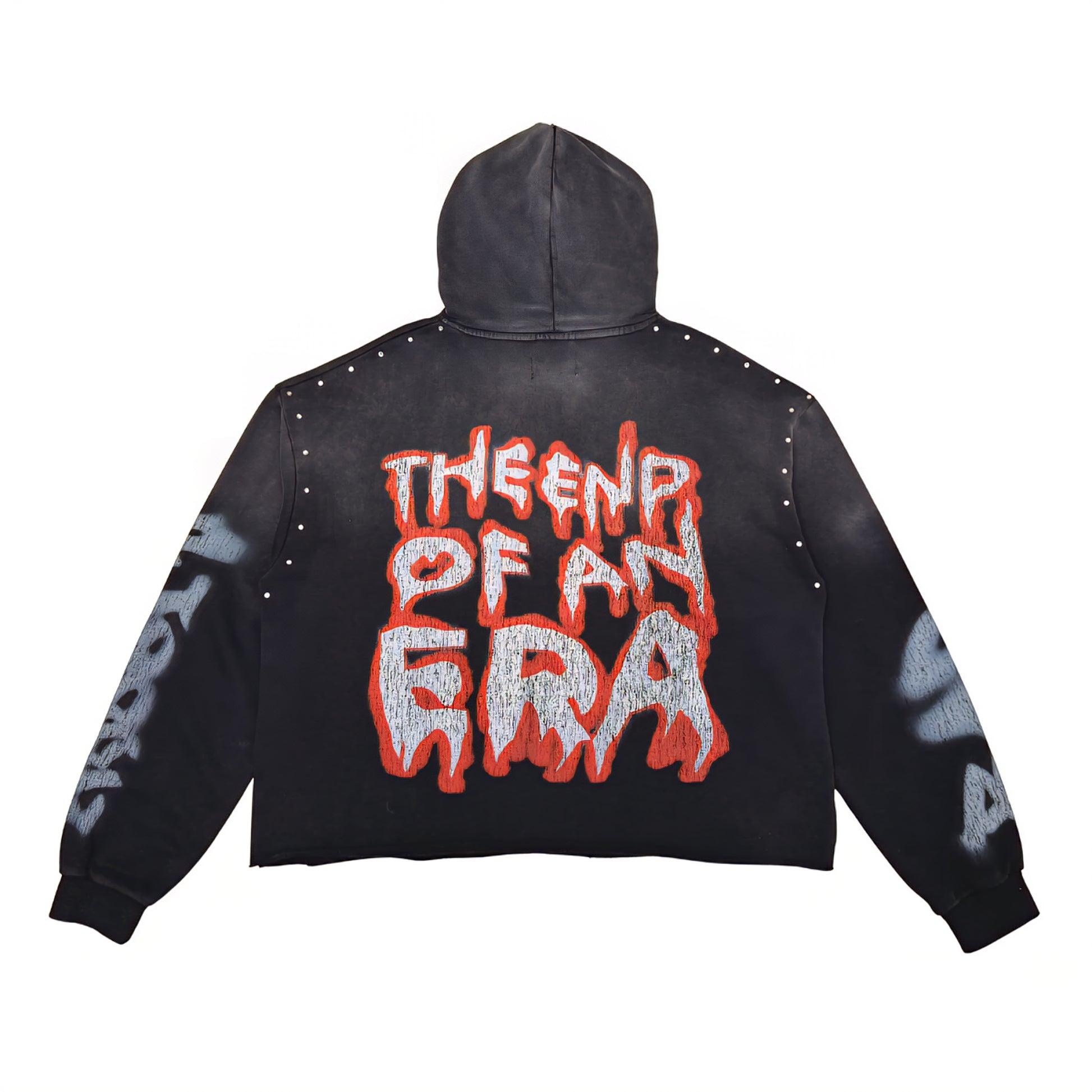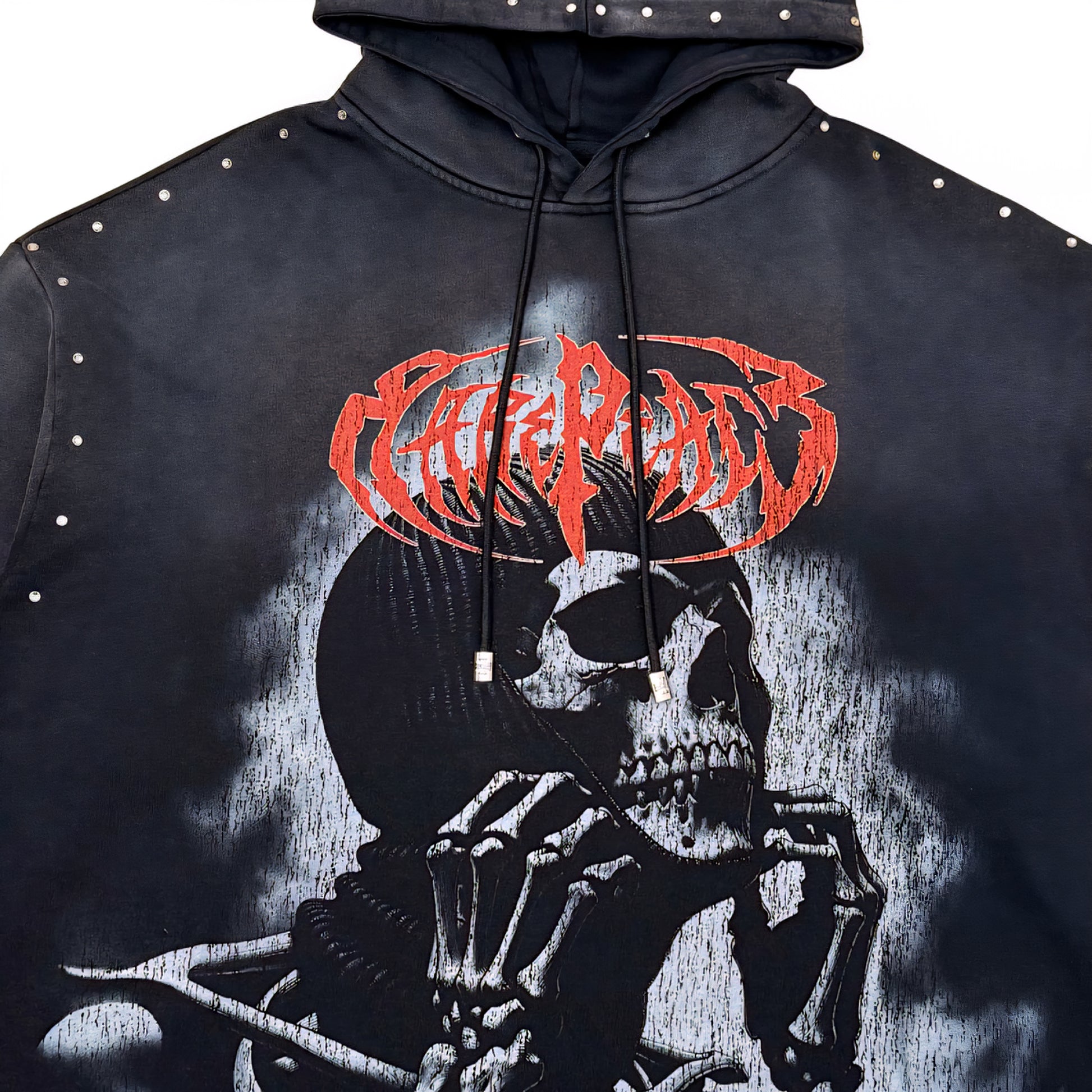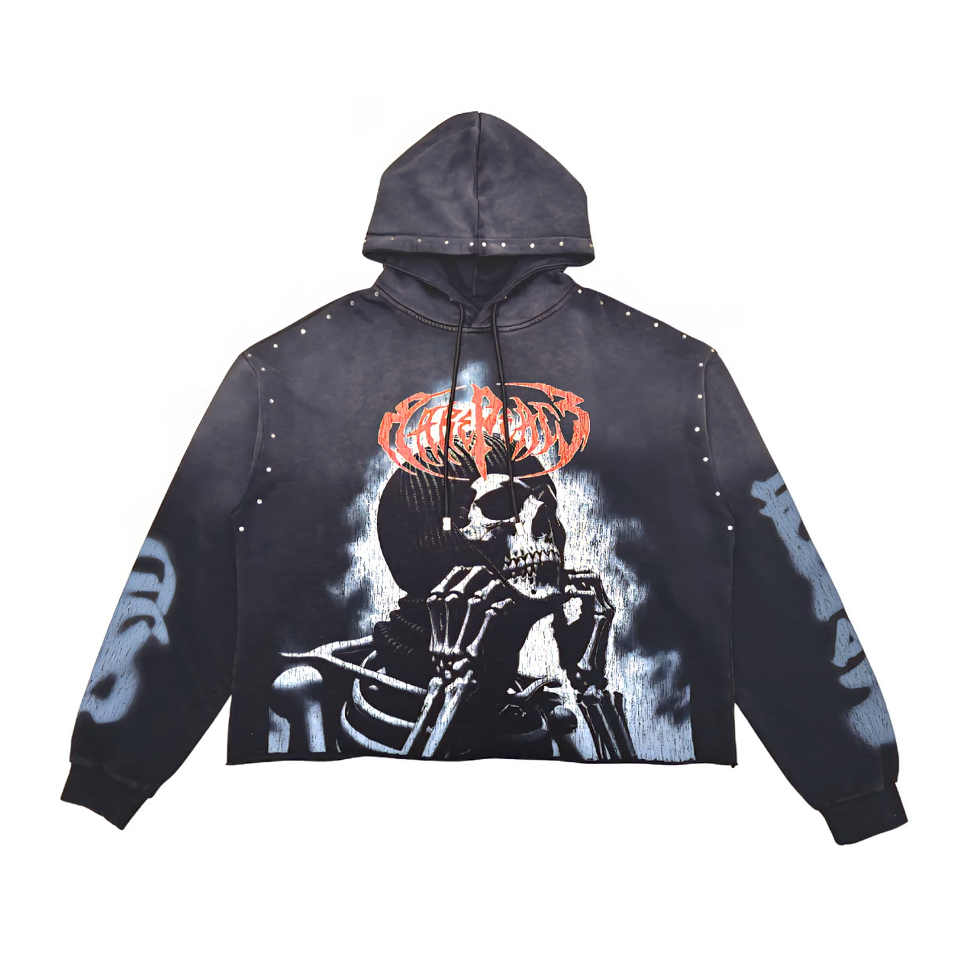 Rare Peace Bad Habits Washed F. Terry Cut Off Hoodie w/ Rhinestones