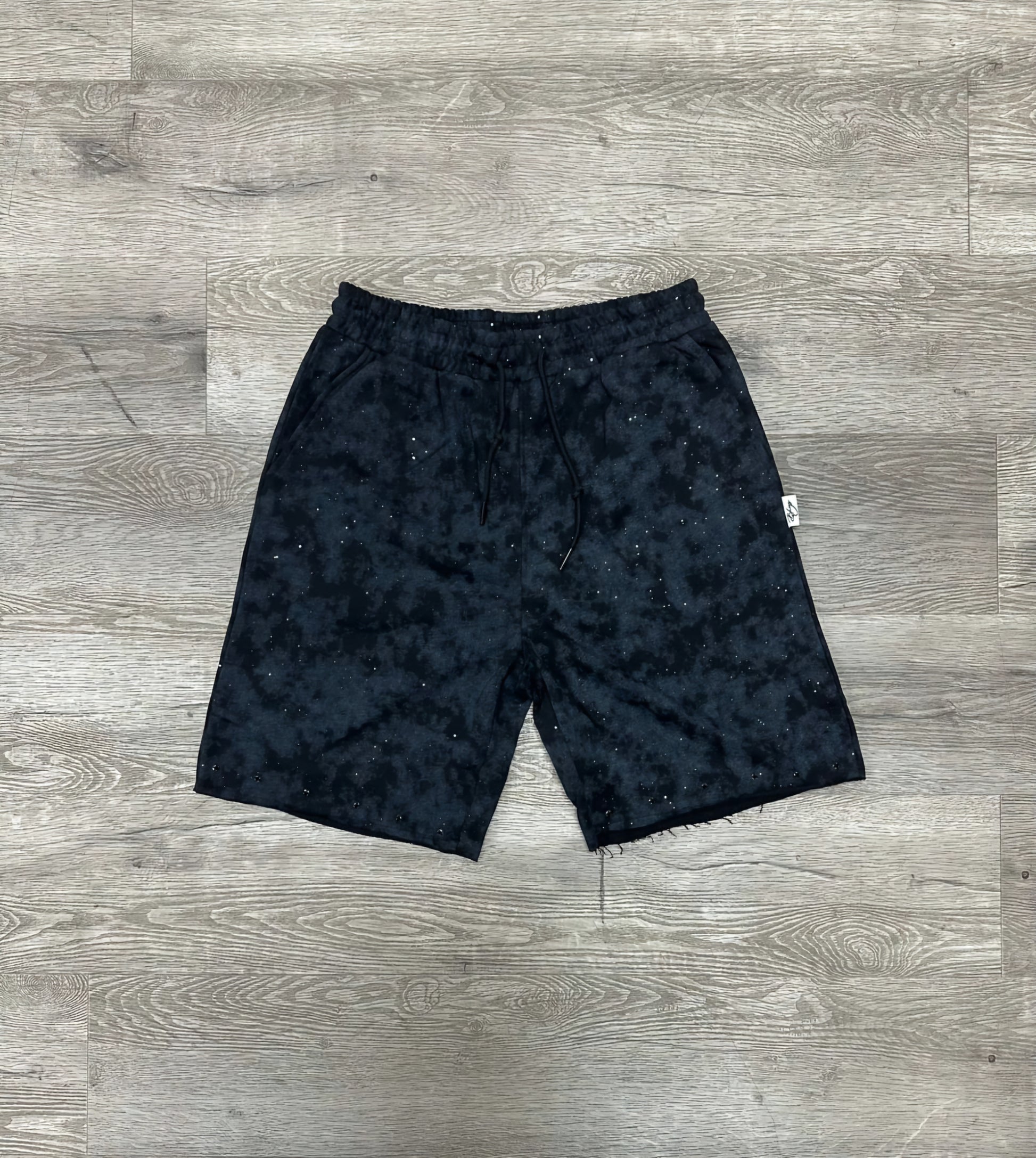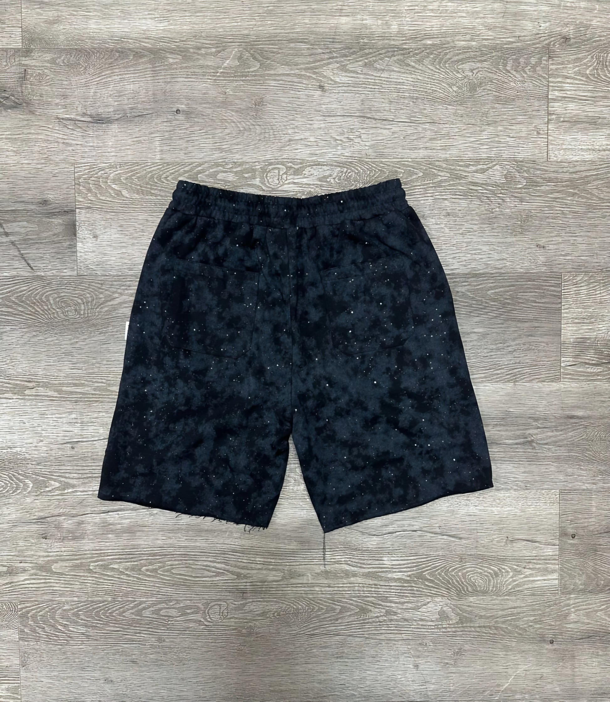 Bkys Rhinestone French Terry Shorts Acid Wash Black
