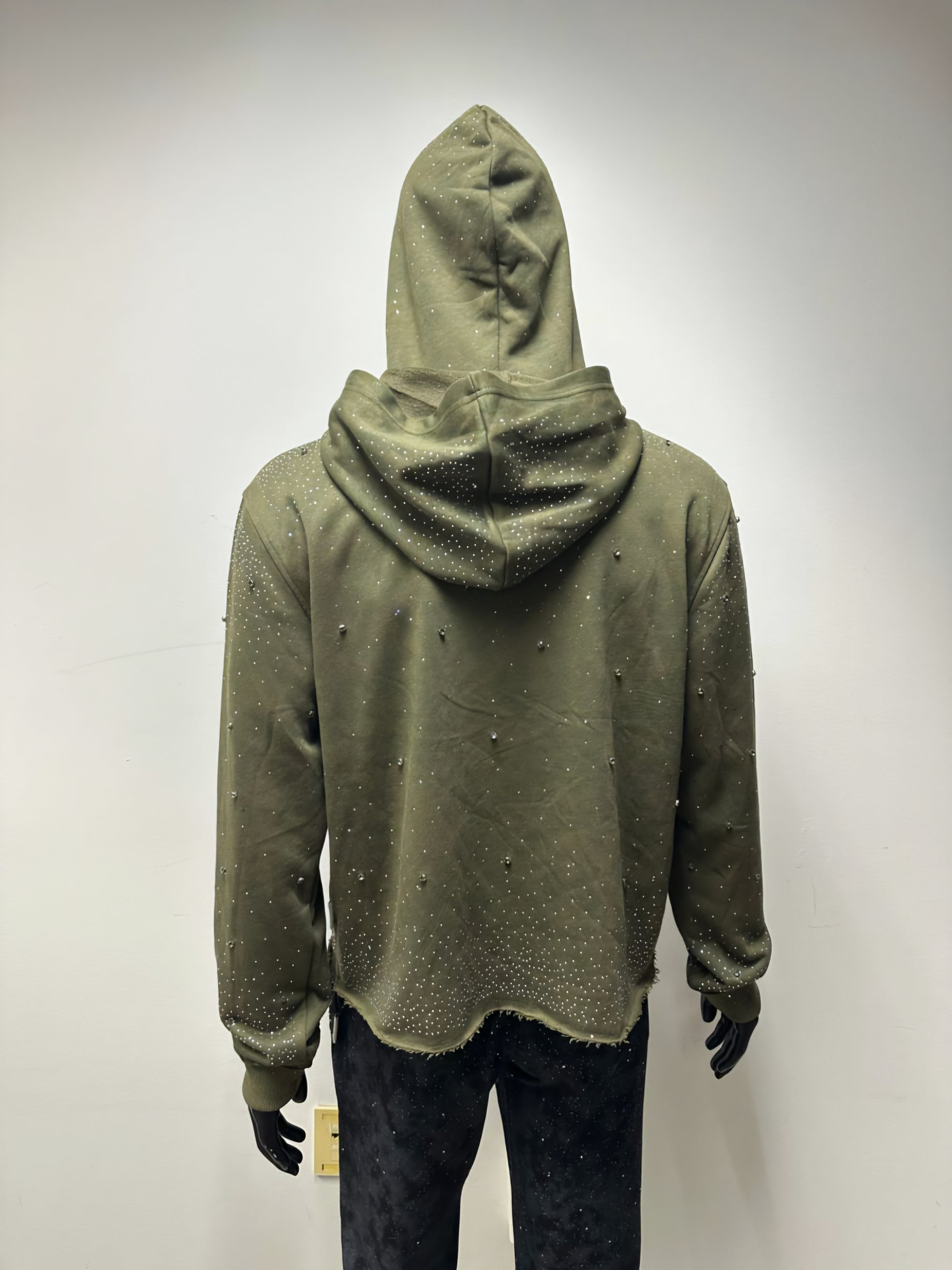 BKYS VVS Flooded Rhinestone Hoodie With Ski Mask Attached (Olive)