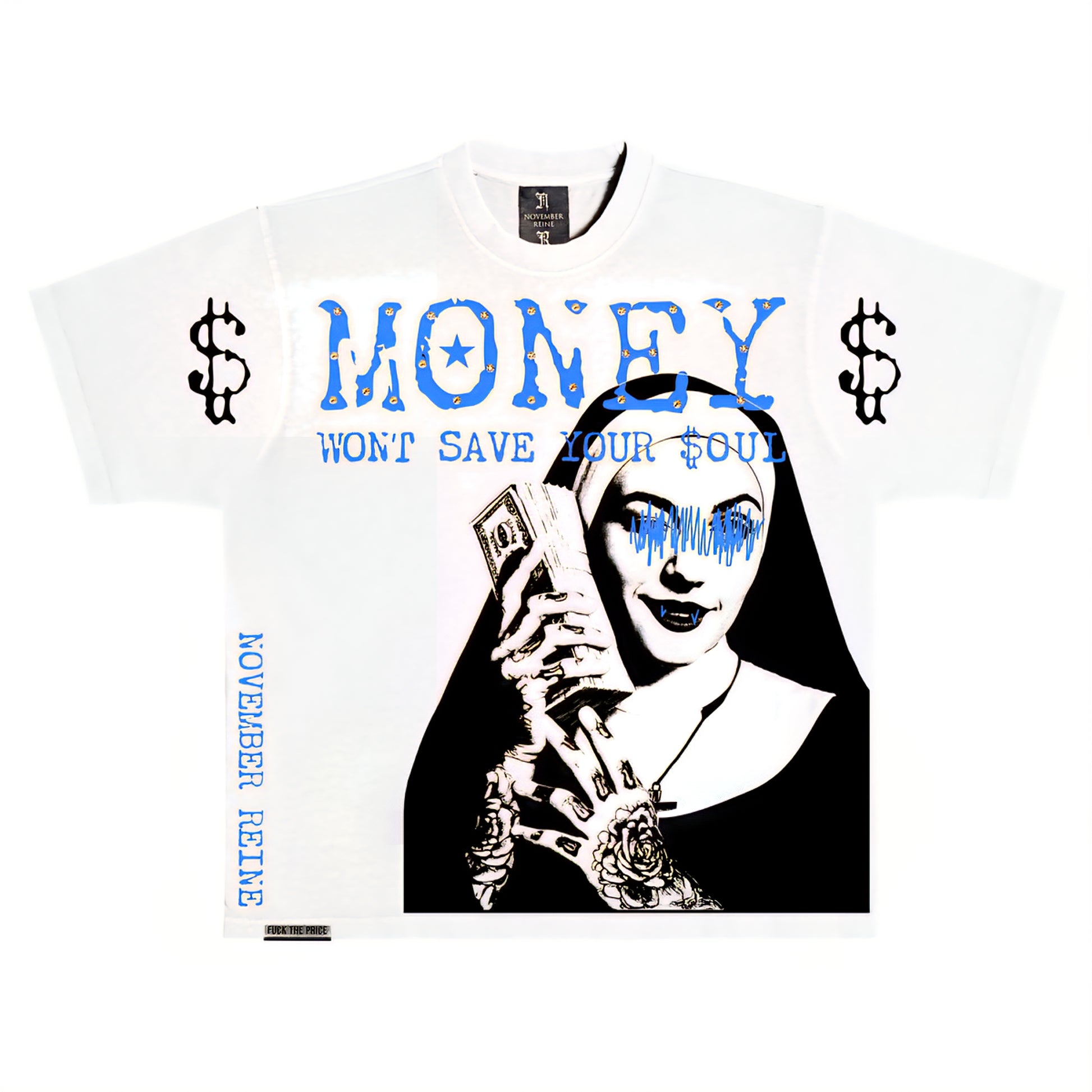 November Reine Money Won't Save You Luxury Heavyweight T-shirt With Rhinestones