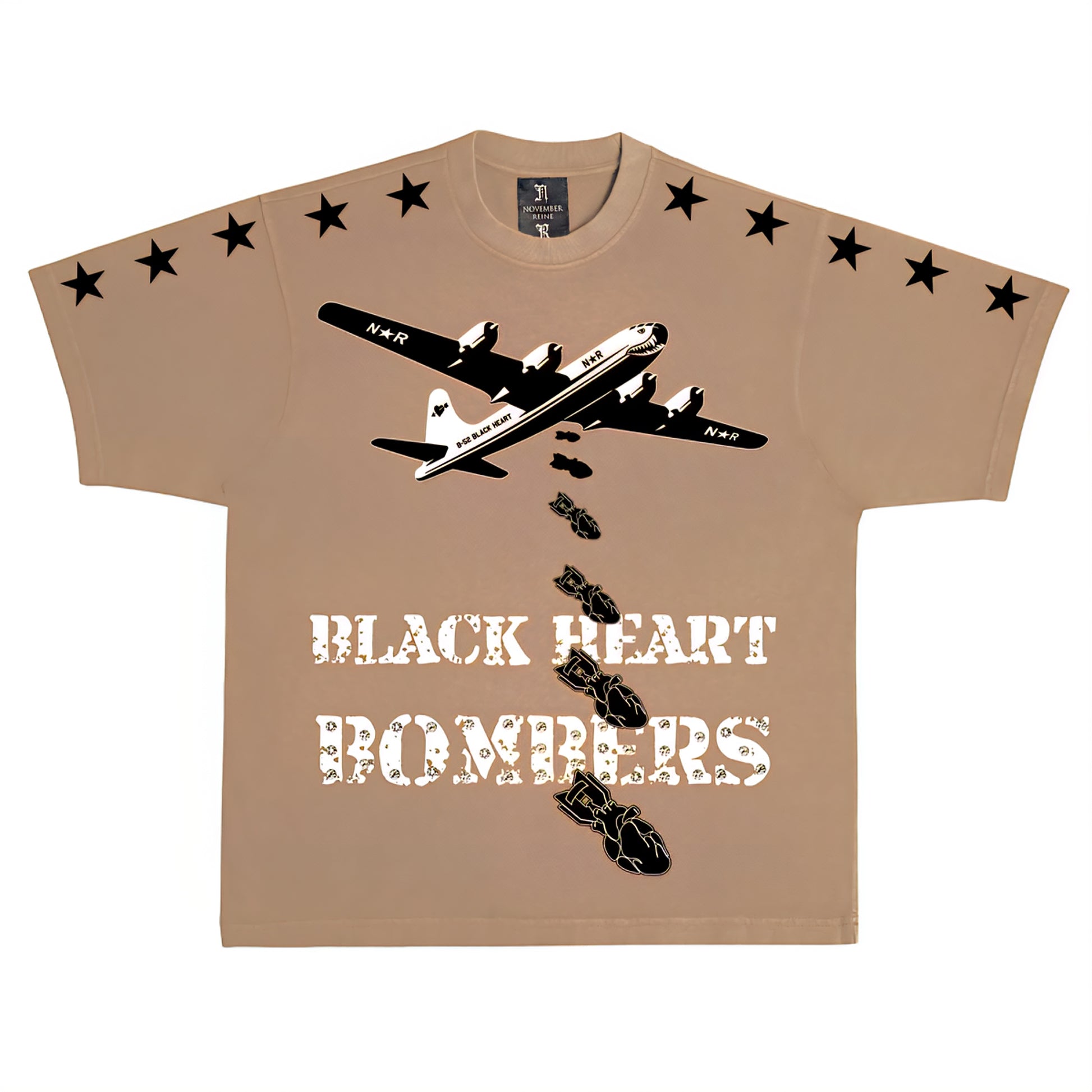 November Reine Black Heart Bombers Luxury Heavyweight T-shirt With Rhinestones