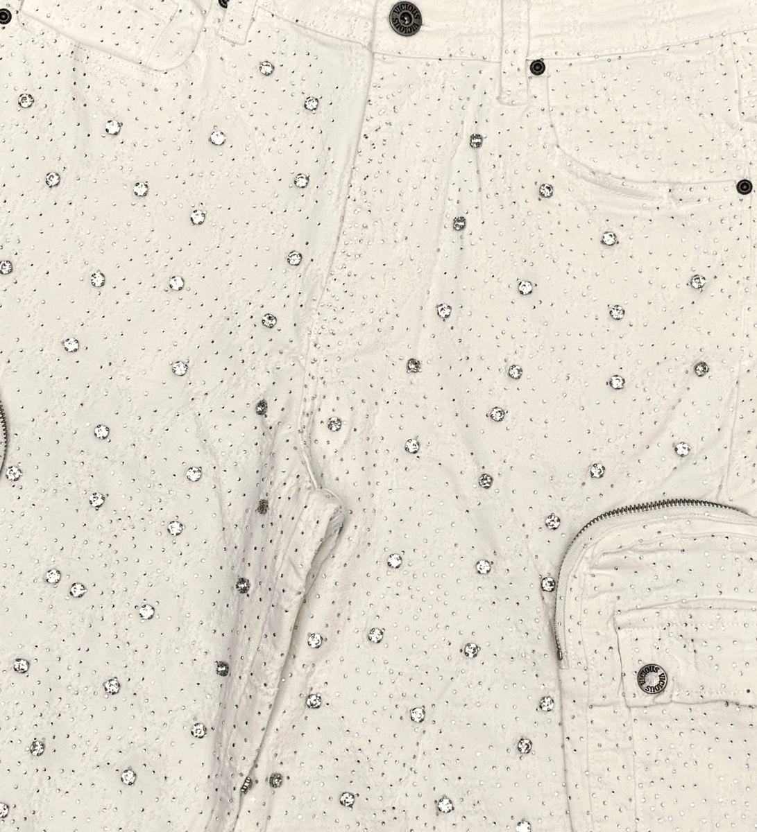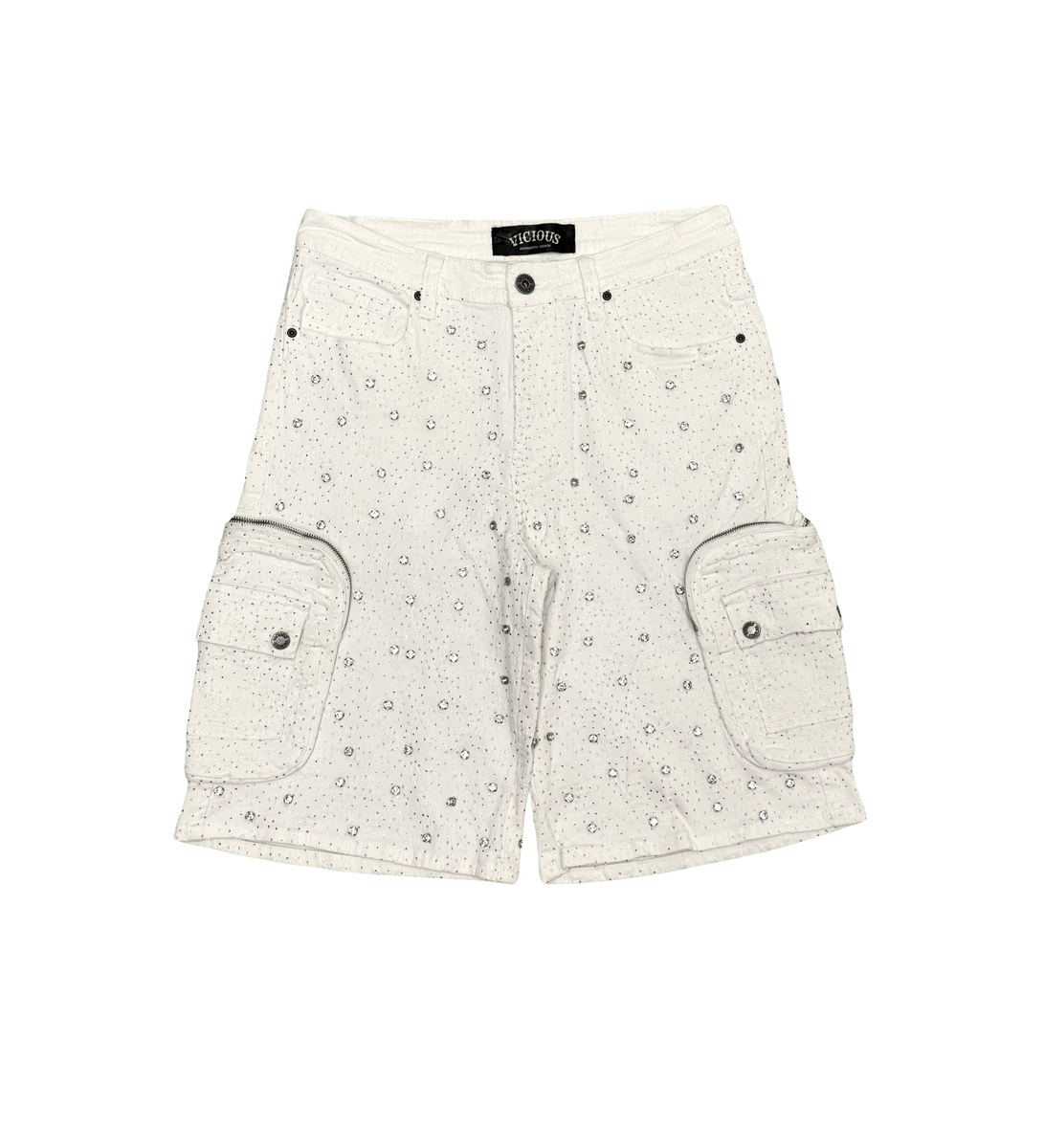 Vicious Embellished Rhinestone Denim Shorts (Off White)