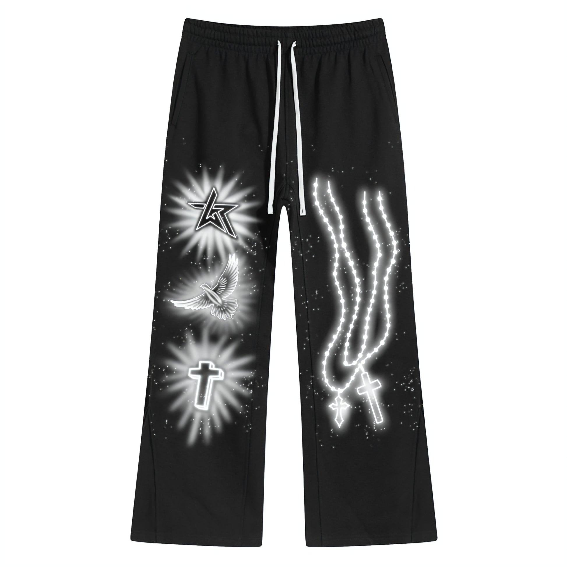 Wknd Riot Airbrush Rhinestone Stacked Sweatpants