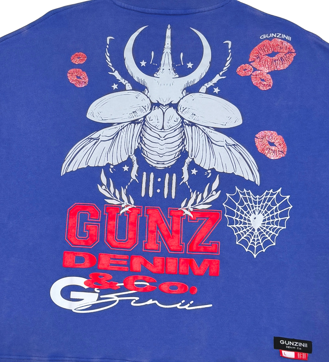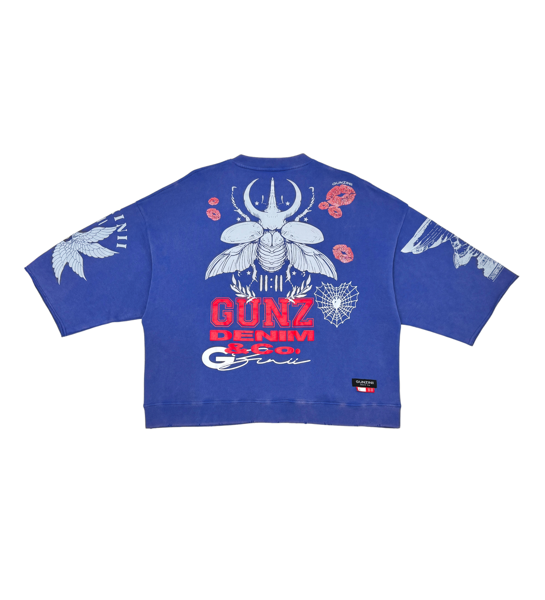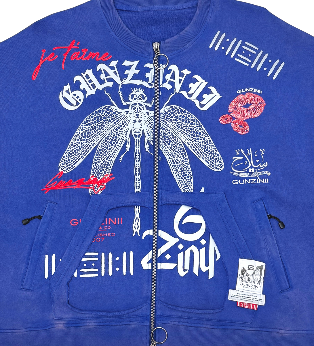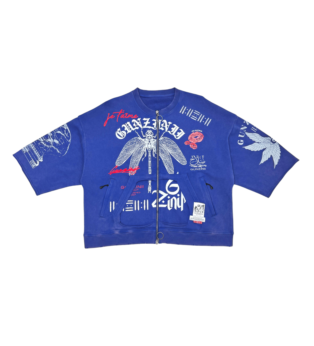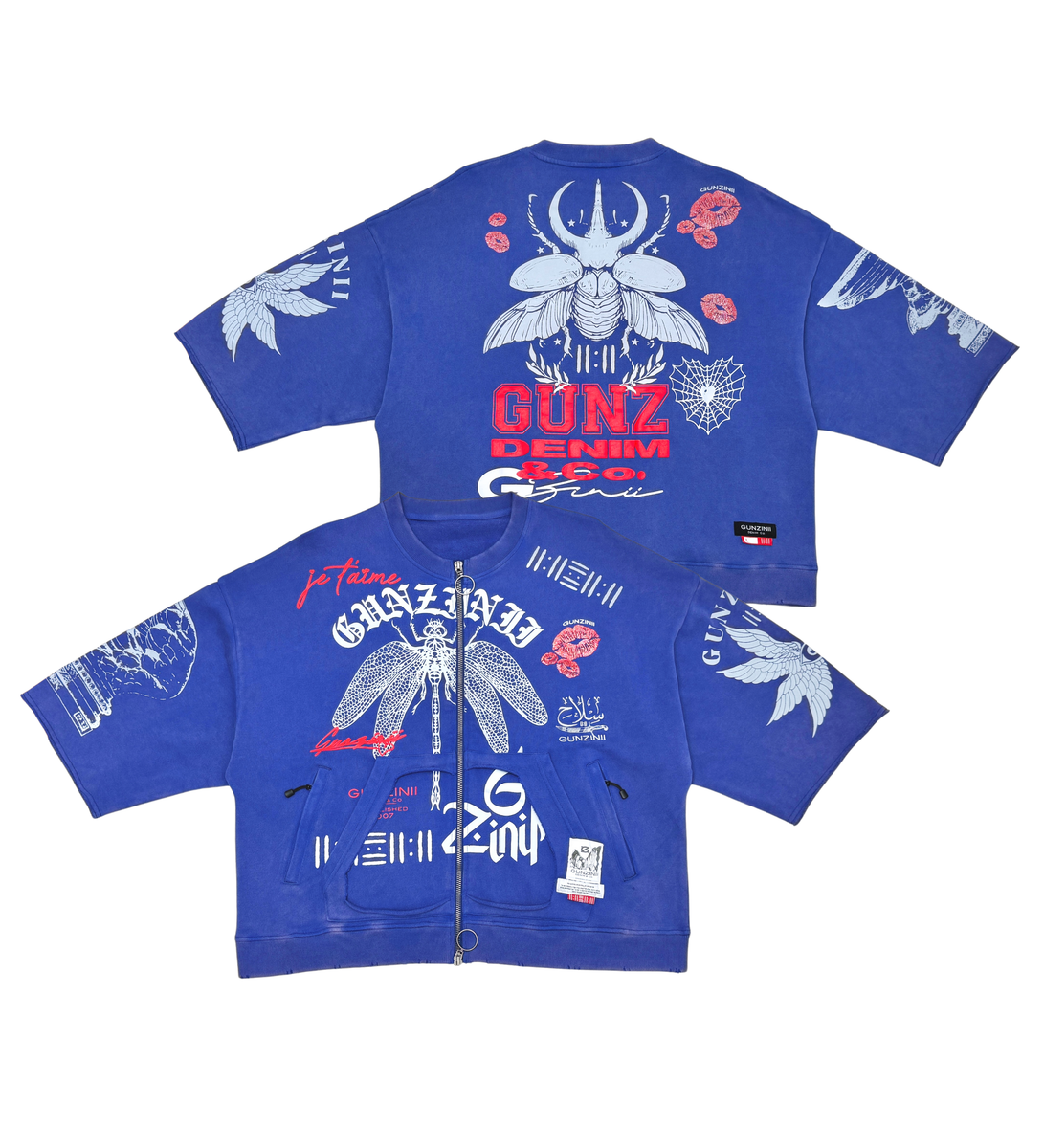 Gunzini Dragon Fly Full Zip Tshirt Cropped T-shirt (Blue)