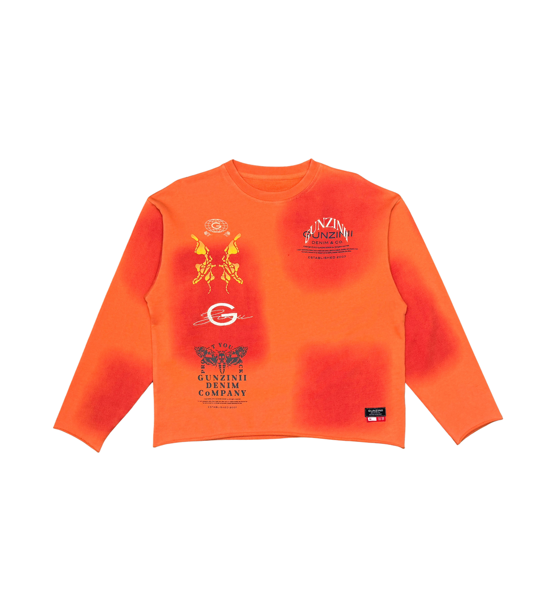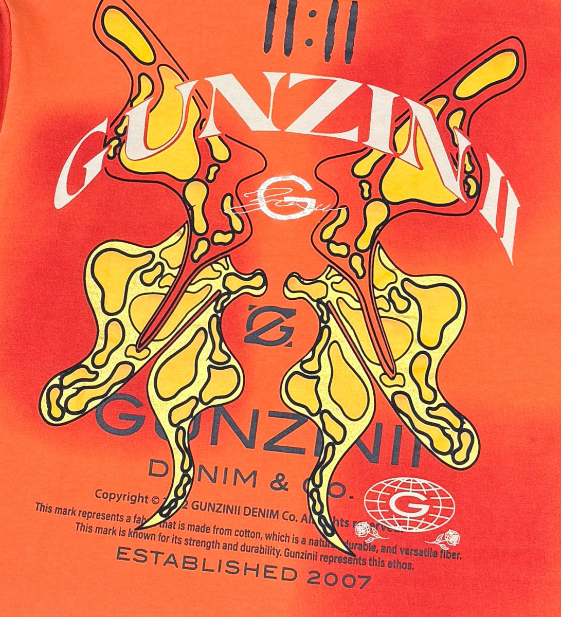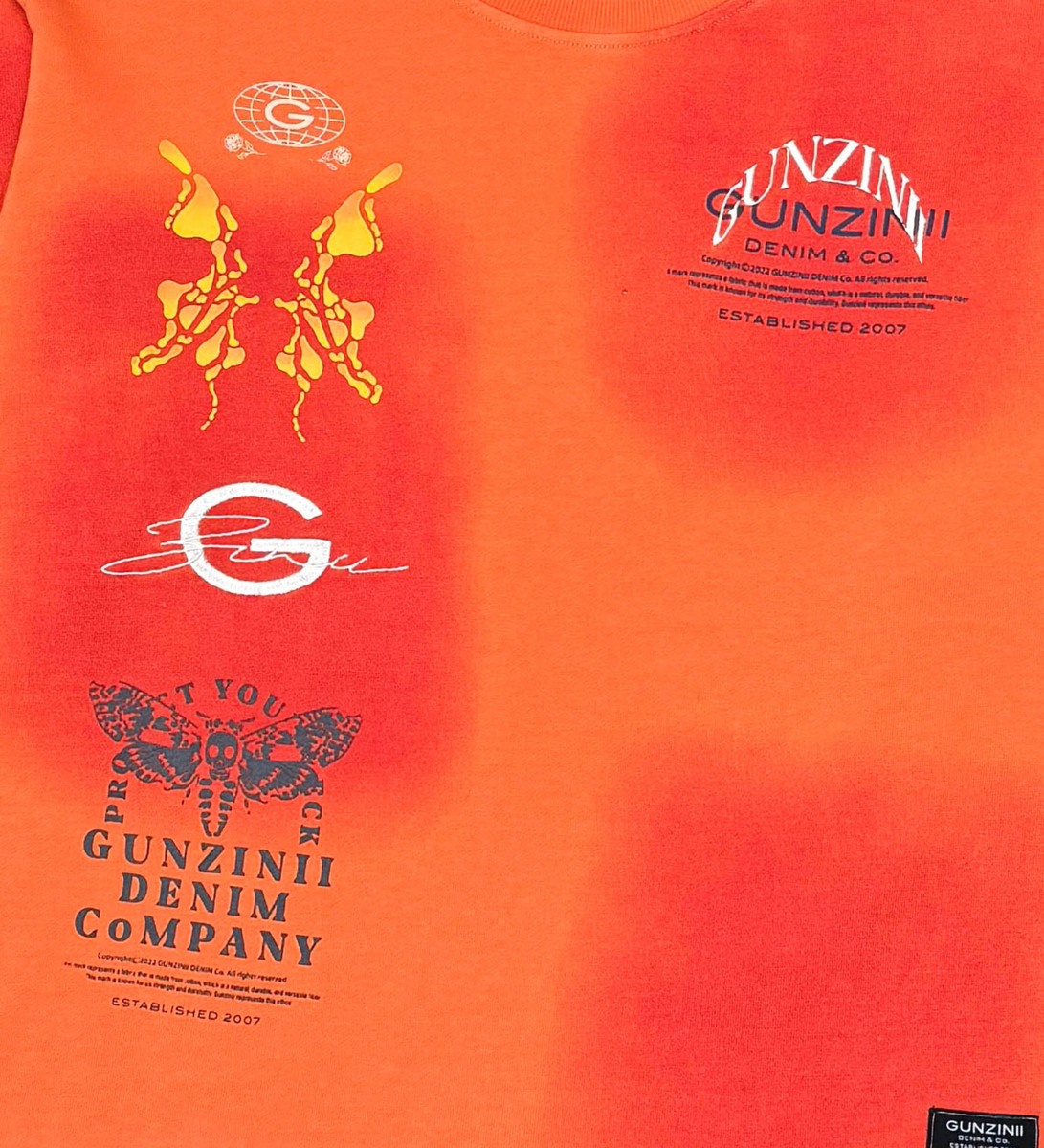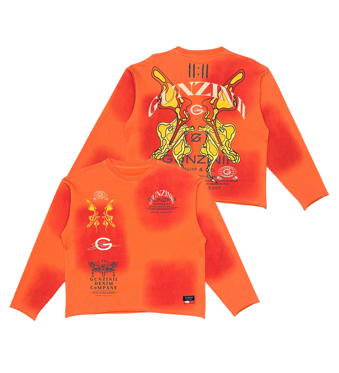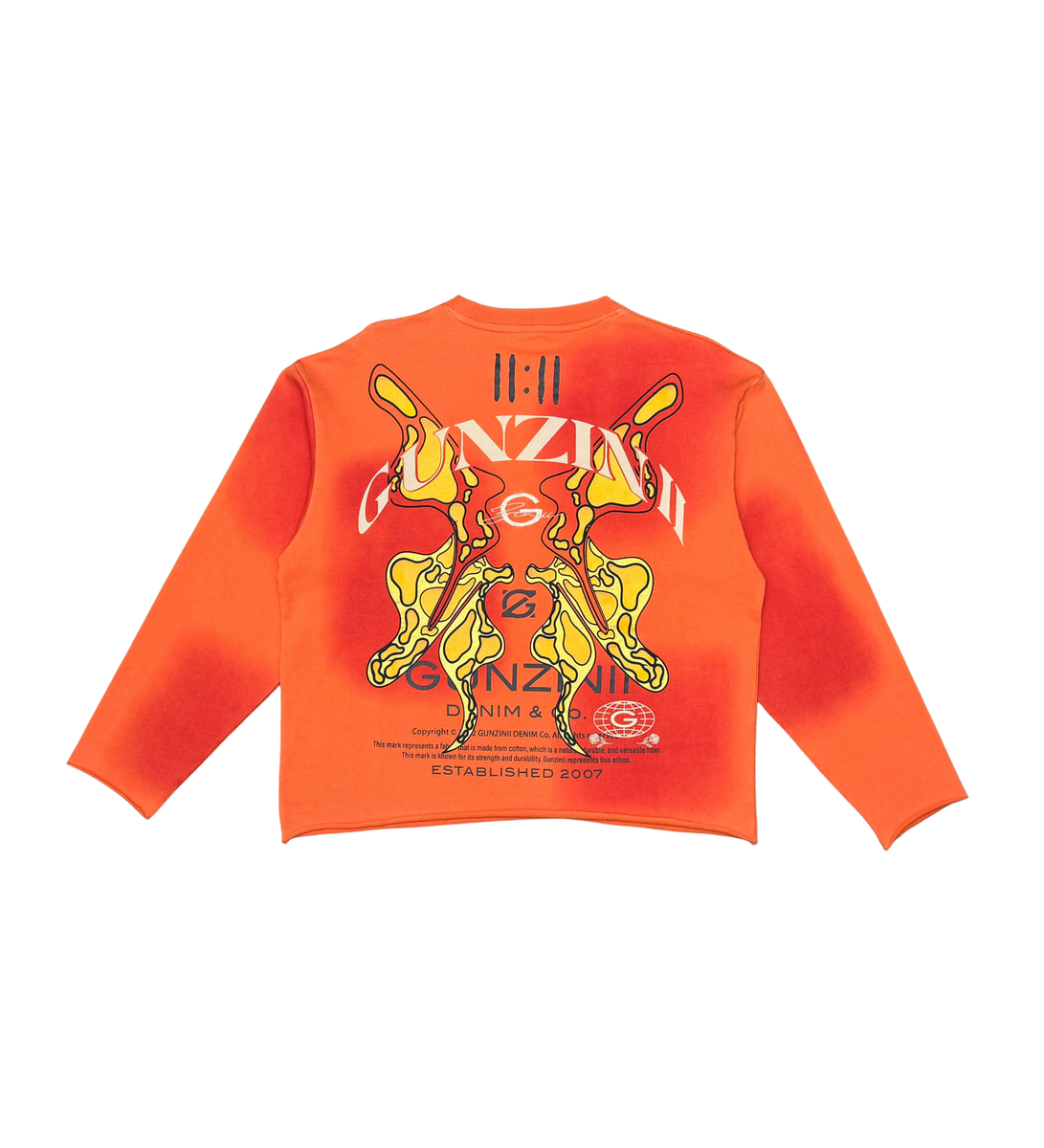 Gunzinii Butterfly Effect Tye Dye Crop Crew Neck (Orange)