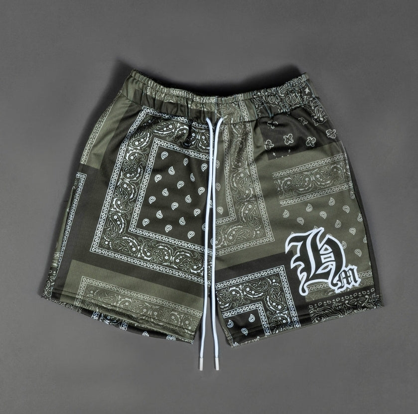 Hasta Muerte Bandana Paisley Mesh Shorts (Olive)
