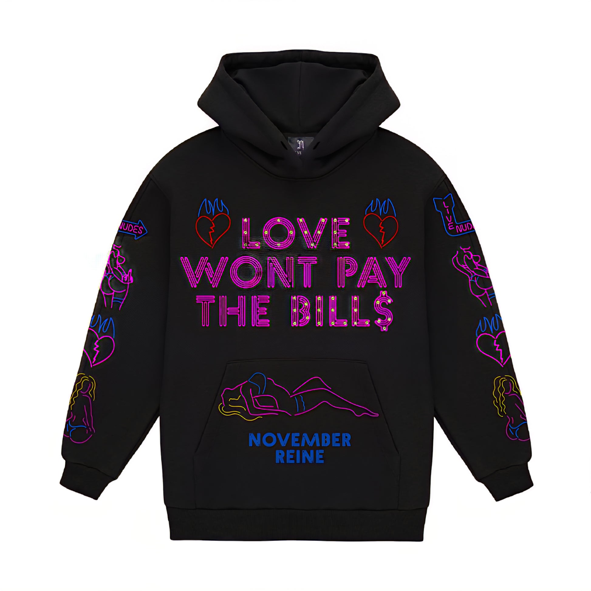 November Reine Rhinestone Love Won't Pay The Bills Luxury 17oz French Terry Hoodie