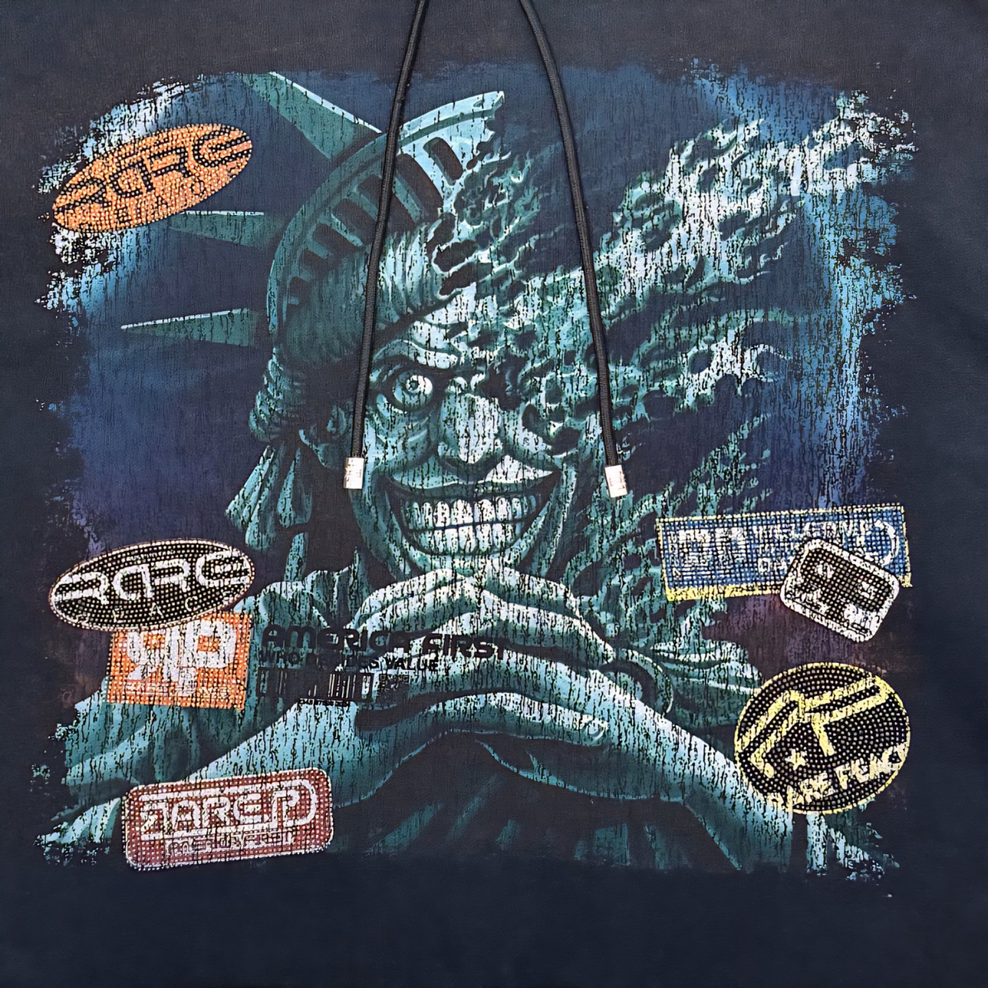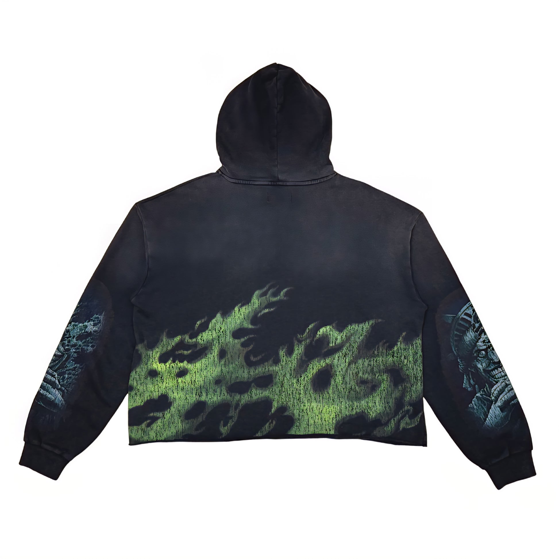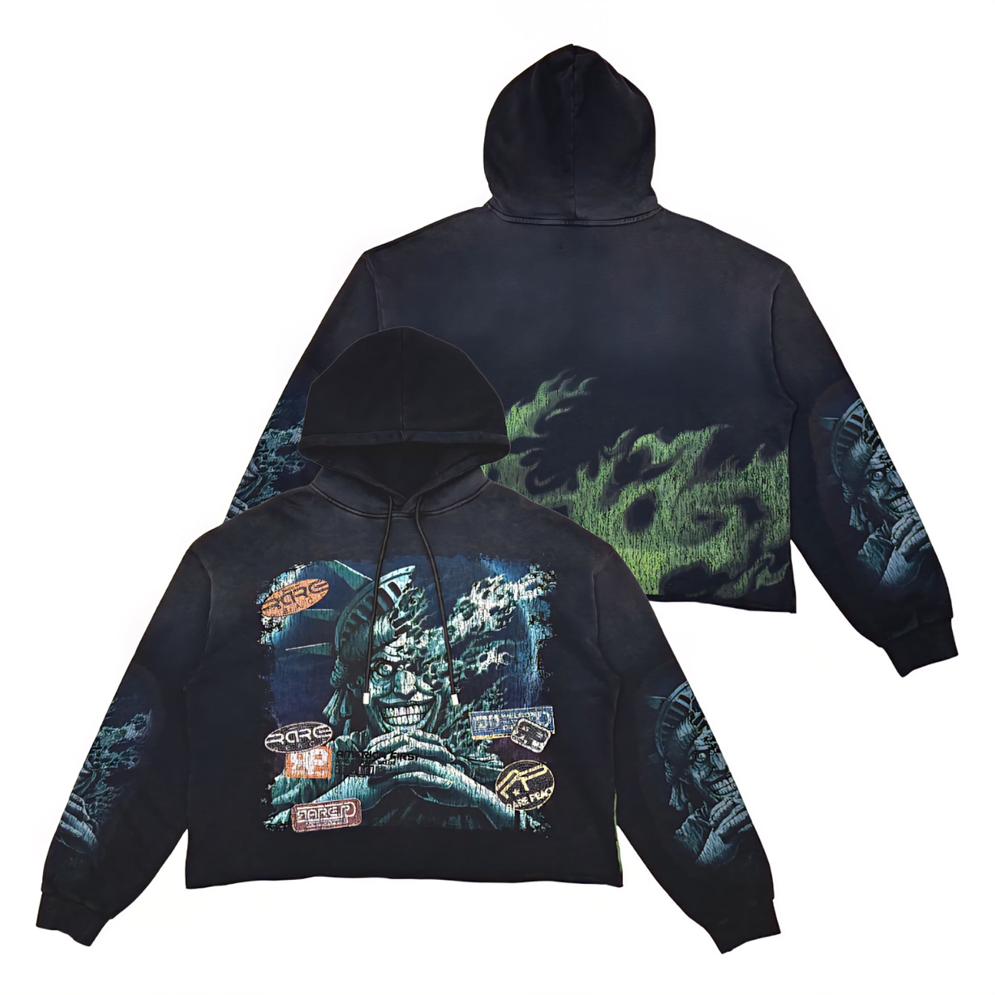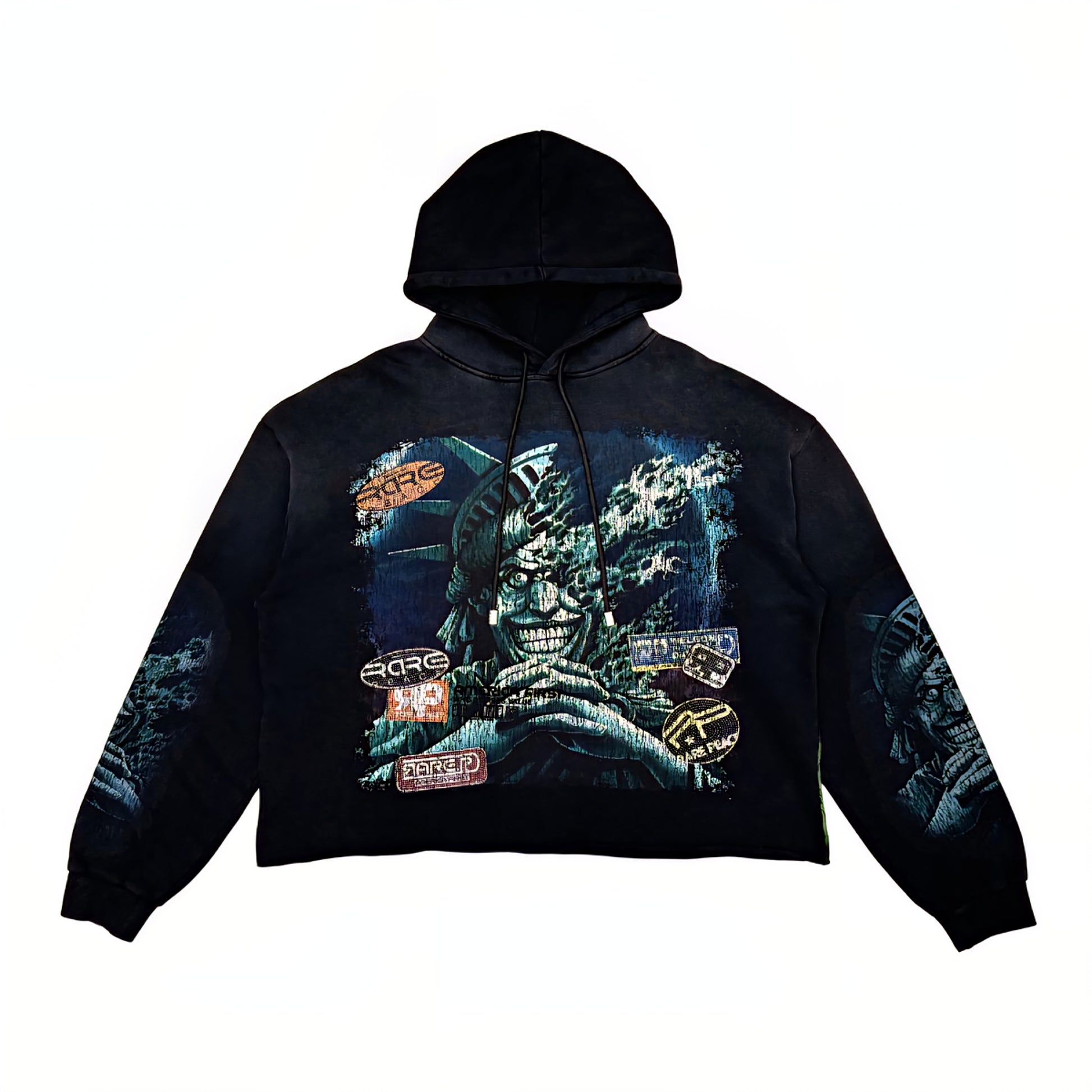 Rare Peace The City Is Mine Washed F. Terry Cut Off Hoodie w/ Rhinestone Details