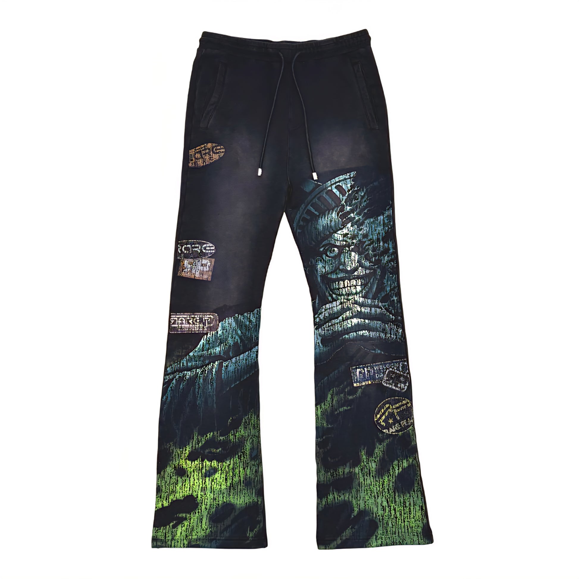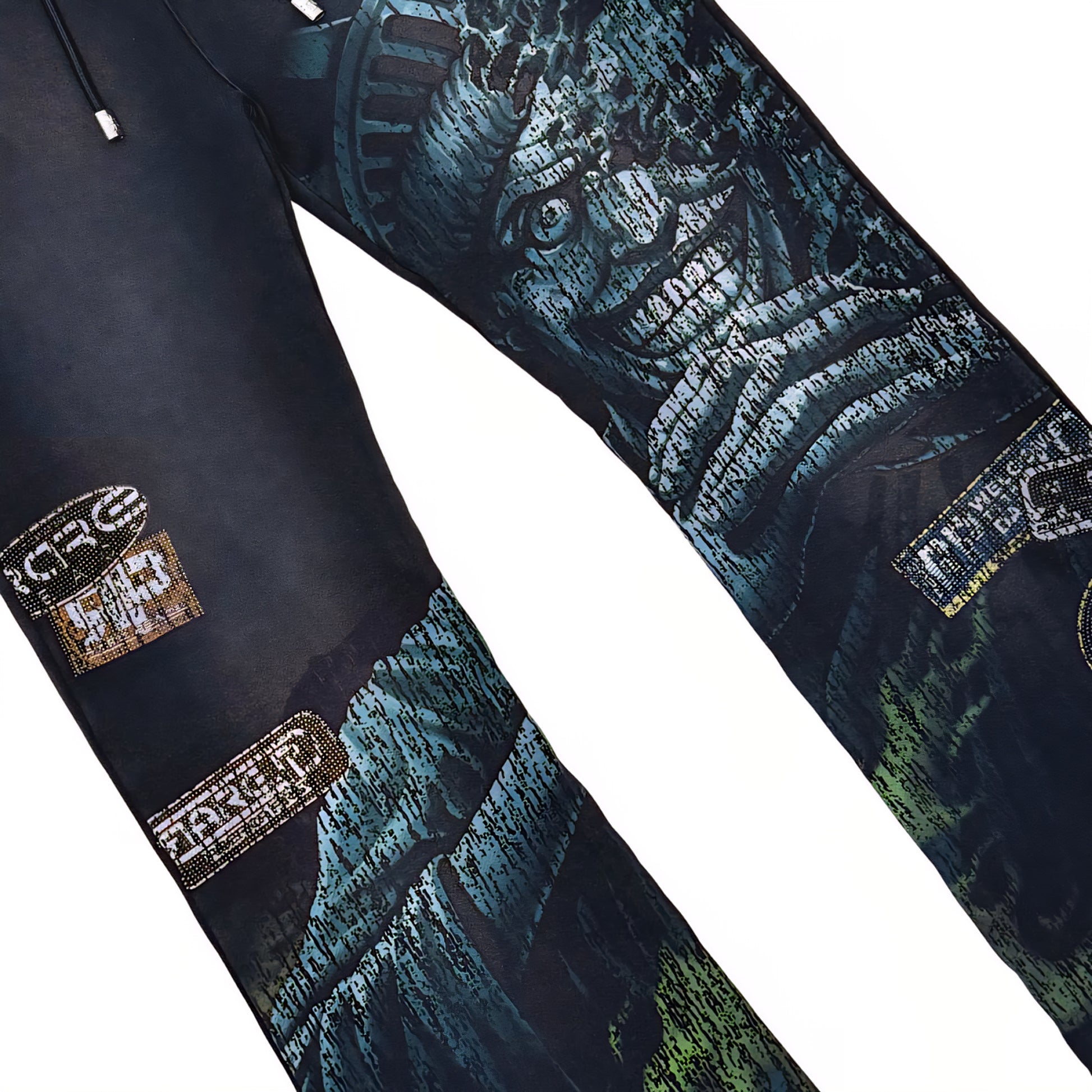 Rare Peace The City Is Mine Washed F. Terry Stacked Jogger w/ Rhinestone Details